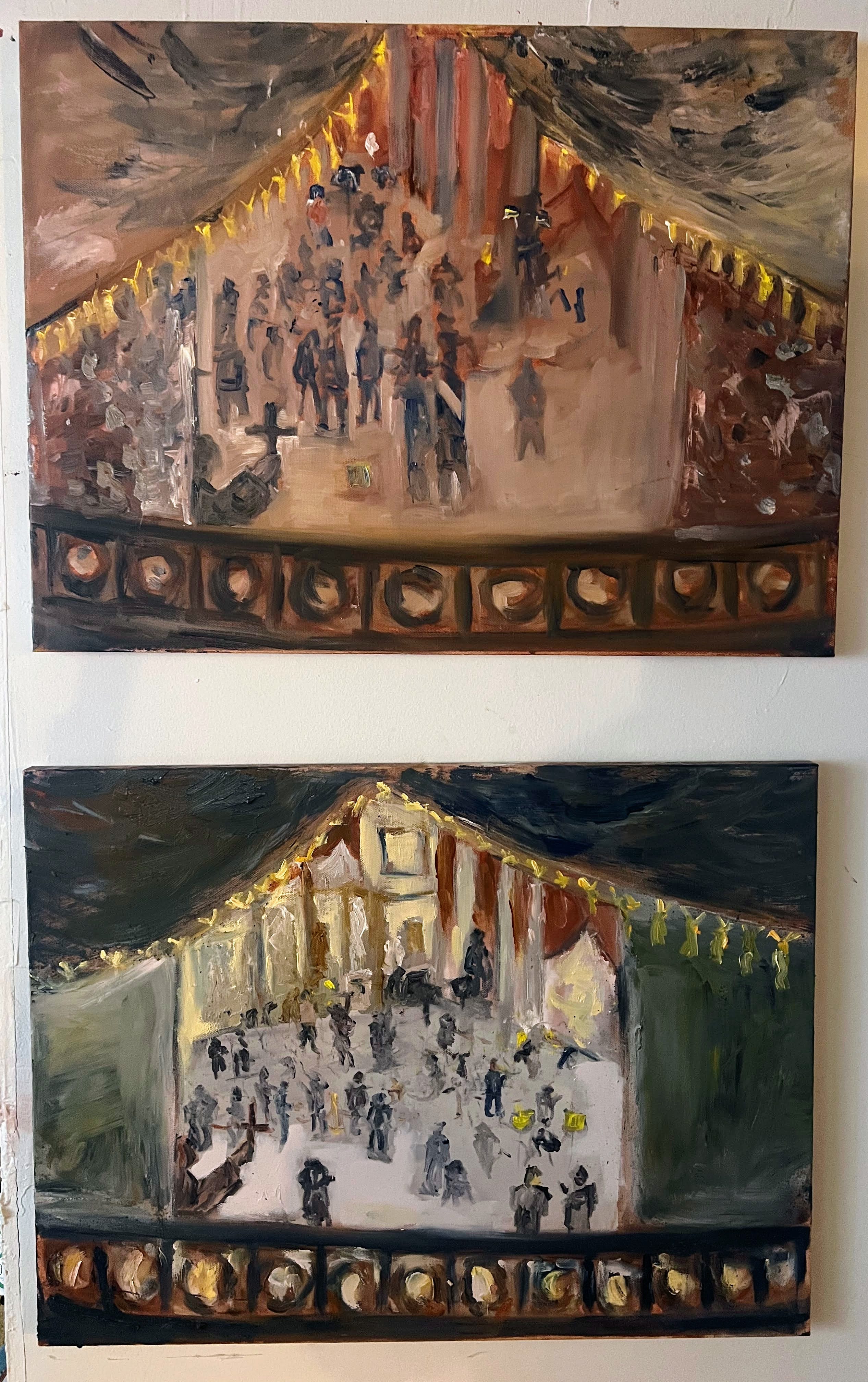 The sketch hung on my fridge for over a year, reminding me each day of the art potential of SOTU. So this month at Biden’s 3rd SOTU, I made my move, bringing a full-on oil painting kit to the Capitol. Speaker Johnson’s team gave me the green light to paint above Statuary Hall, and the rest was history.
