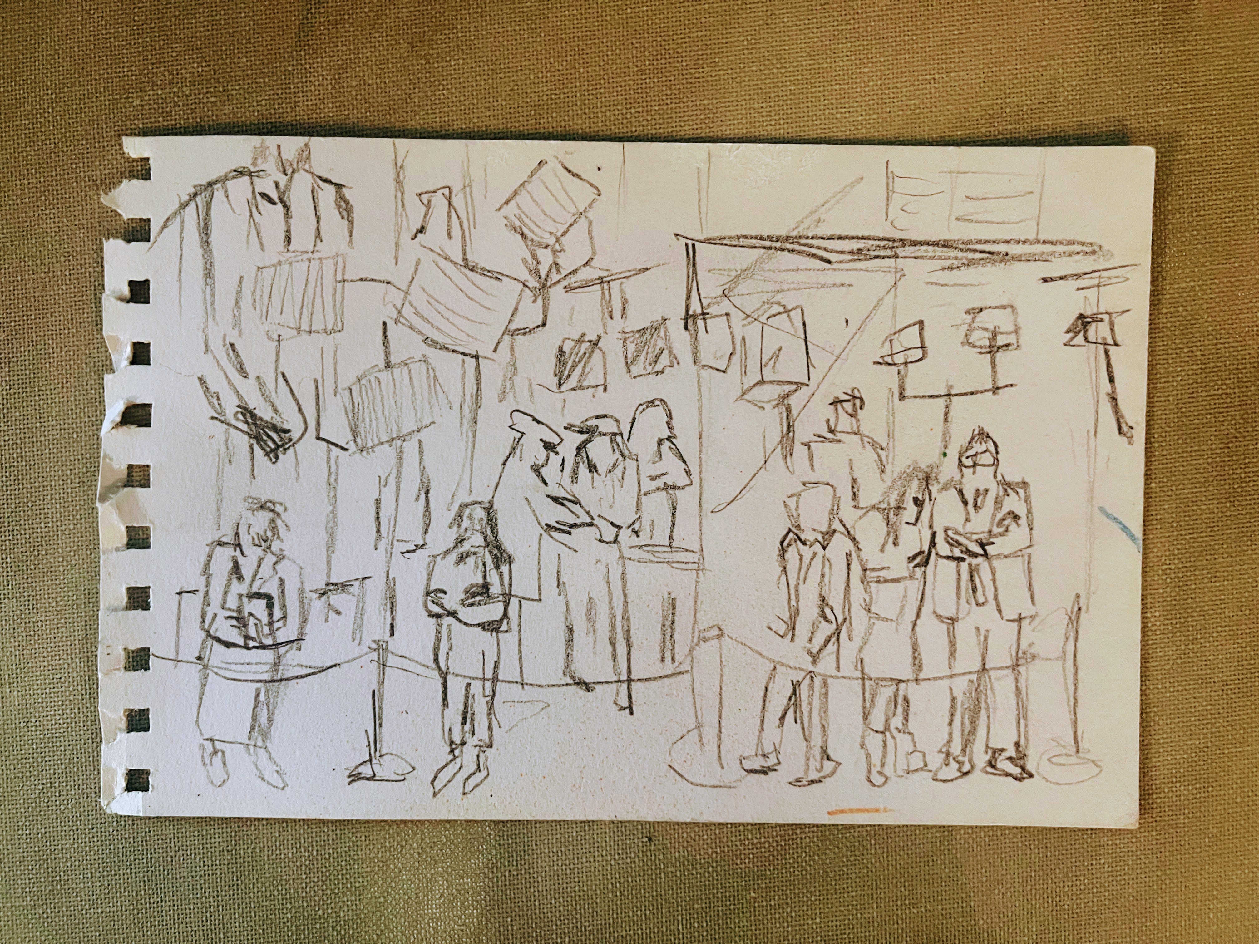 By Biden’s 2nd SOTU, I was an emerging artist, so I brought a sketch pad and pencil to draw the reporters staking out the long processions of luminaries that walk through Statuary Hall on their way to the House chamber. Here’s one of the sketches I drew last year —Â